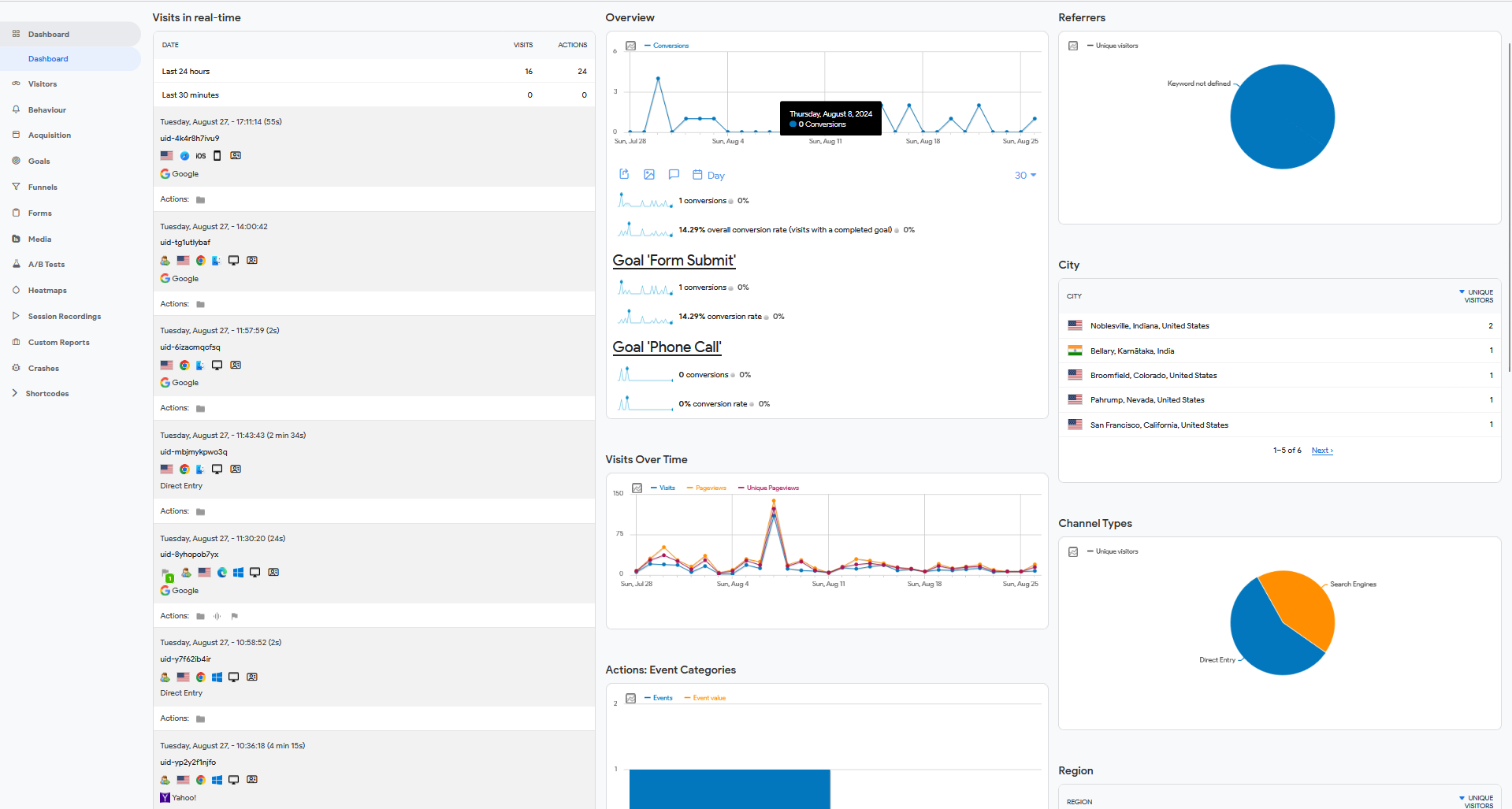 See the details of every user intraction.